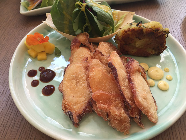 Para terminar, qué mejor que una tempura de pollo marinado con yogur y especias; junto a unos triángulos de cordero Sheekh Kebab, armonizados con un prodigioso Goa Mule, auténtica explosión líquida de sabores dulces y especiados conseguidos a partir de tequila Silver agitado con sirope especiado Benarés, zumo de lima fresca y ginger beer.