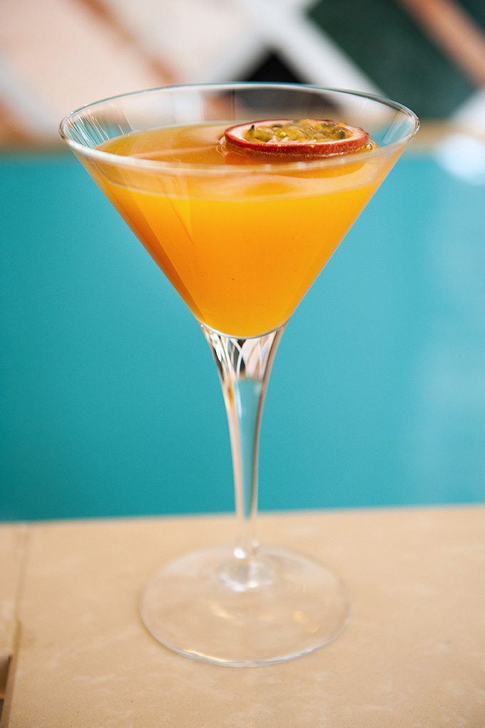 Un cóctel como el maravilloso Passion Fruit Chutney Martini, elaborado por el magistral barman Miguel Ángel Chico con zumo de fruta de la Pasión, vodka, zumo de limón y sirope de azúcar, junto a unos aperitivos crujientes Papadam