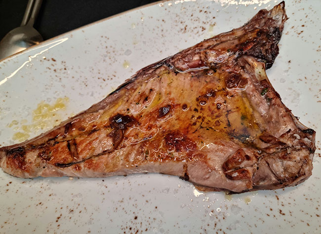 La más exigente selección de materia prima también se constata en el capítulo cárnico con piezones como el lomo alto raza Alemania de 8 años, el premium Dinamarca de 12 años o el imponente cachopo de payoyo con cecina de wagyu.