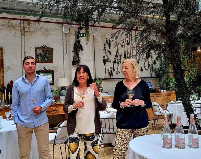 May Madrigal, Alexandra y Alonso Rodríguez, hijo de May y de Gonzalo, fueron los anfitriones de esta ‘puesta de largo’ en el restaurante Ovillo. Para calentar motores, nada mejor que su espumoso rosado Perlas de Otoño Brut Nature, elaborado con cencibel (tempranillo) y garnacha tinta de cepas de 20/50 años, con una producción de tan solo 4.000 botellas. Con una crianza en botella sobre lías durante 18 meses hasta su degüelle manual y ese color rosa pálido que le caracteriza, es pura frescura y elegancia. Disfrute total ya sea comienzo o final.