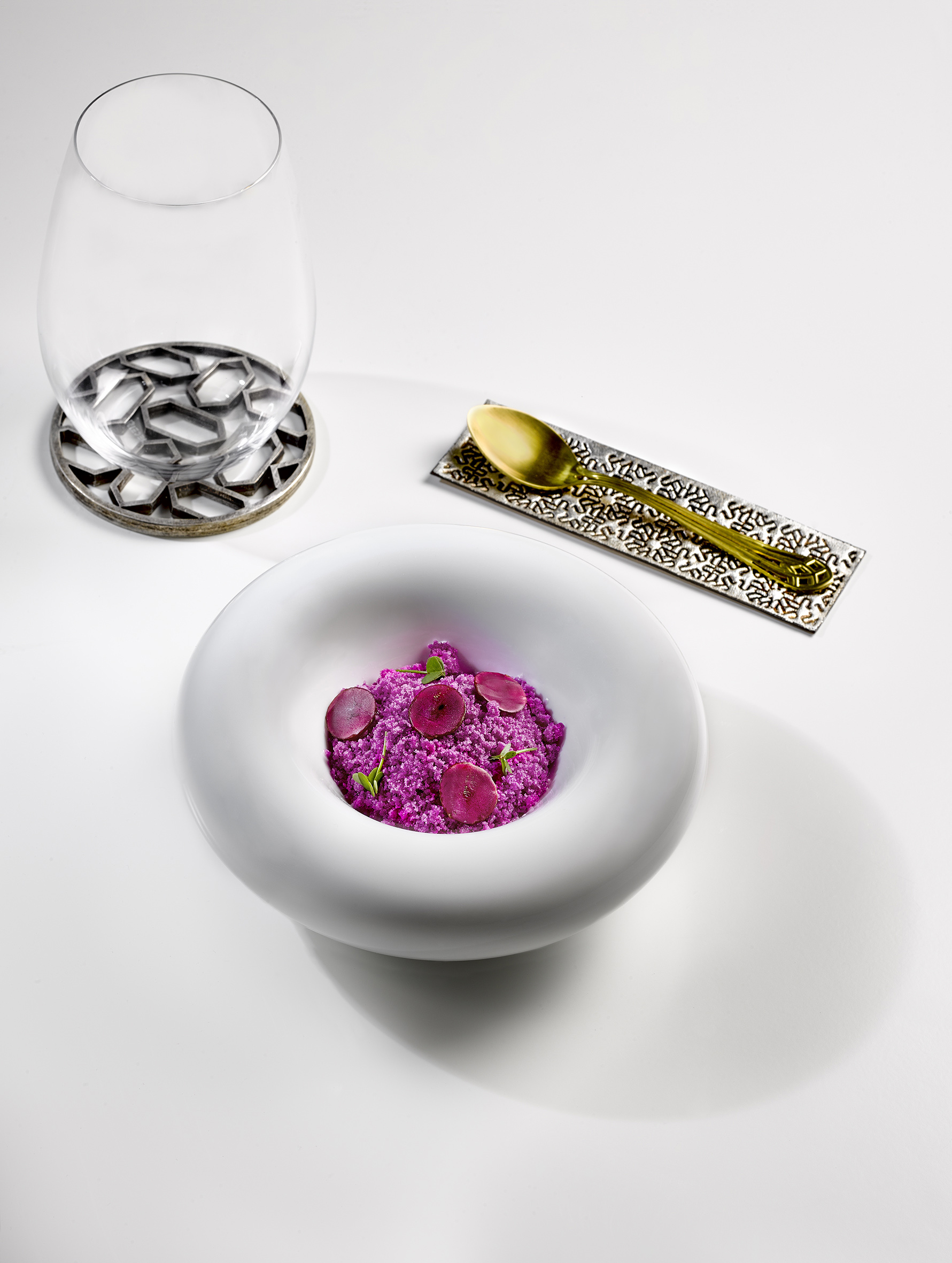 Aromas y sabores tan sugerentes y evocadores como los que desprenden el Pepino de la Sabana con Shanklish y menta; el Karim (crema) de piñones, melón de primavera, erizo del Sáhara y orégano fresco; las Acelgas guisadas con yema de