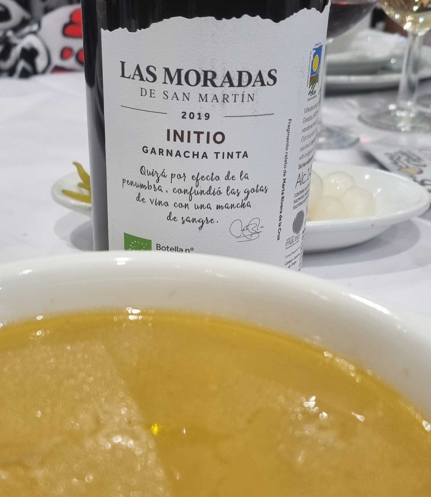 Para maridar tamaña aventura, tres vinos de la D.O. Vinos de Madrid que en ningún momento solaparon los memorables sabores de este guiso tan castizo. El tinto crianza Dos de Mayo de Vinos Jeromín, seguido por dos acompañantes de lujo: el blanco de albillo real y el tinto Initio garnacha tinta de la bodega Las Moradas de San Martín. Experiencia inolvidable que sin lugar a dudas todos nos empeñamos en repetir.